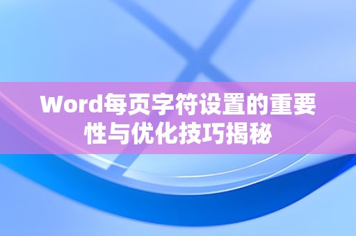 通过以上内容,相信您已经掌握了Word中每页字符的设置方法及技巧,在今后的文档编辑过程中,合理设置每页字符,可以使您的文档更加美观、易读。