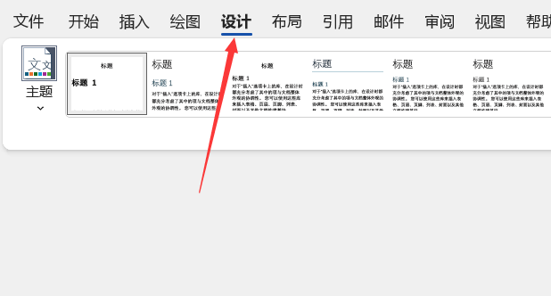 打开Word文档,点击“设计”选项卡。