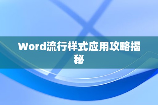 答案:在“开始”选项卡中,找到“样式”组,选择合适的流行样式,然后将其应用到需要设置样式的文本上。
