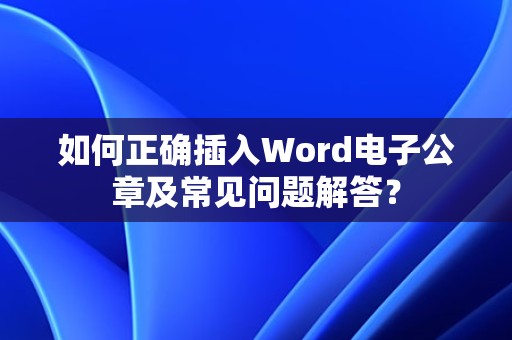 Word电子公章的插入能够提高文件的安全性、规范性和便捷性,通过以上教程,您可以在Word中轻松插入电子公章,了解一些常见问题的解答,有助于您更好地使用电子公章,在操作过程中,请确保遵循相关法律法规,确保电子公章的法律效力。