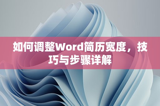 在Word中调整简历宽度有多种方法,可以根据个人喜好和实际需求选择合适的方法,通过合理调整简历宽度,可以使简历更加美观、易读,提升求职成功率。