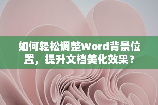 通过本文的介绍,相信大家对Word背景调整位置的方法和技巧有了更深入的了解,在实际操作中,可以根据自己的需求灵活运用这些技巧,美化文档,提升文档的整体效果。