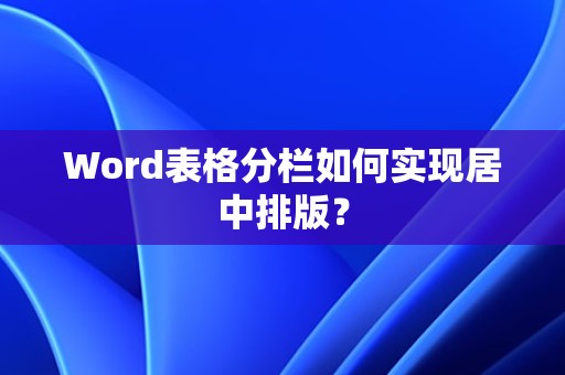 最佳答案1、创建分栏表格在Word文档中插入一个表格,并设置好所需的列数和行数,选中表格,在“页面布局”选项卡中,点击“分栏”按钮,选择“两栏”或“三栏”等分栏方式。2、设置表格居中(1)选中表格:将光标放在表格内,或者直接选中表格的任意一个单元格。(2)点击“居中对齐”:在“开始”选项卡中,找到“段落”组......