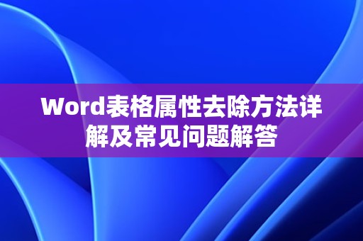 Word表格属性是指表格中的一些默认格式设置,如边框、底纹、颜色等,这些属性有时会影响表格的视觉效果,使得表格看起来不够简洁,去除表格属性可以使表格更加清晰,提高文档的整体美观度。