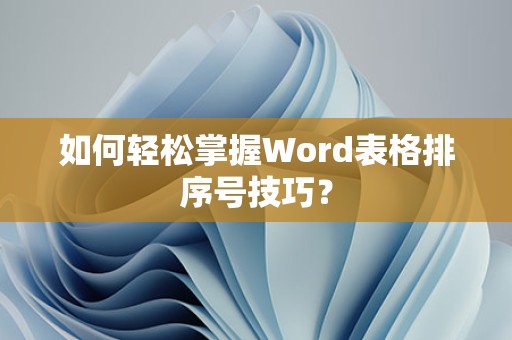 通过以上介绍,相信您已经掌握了Word表格排序号的技巧,在实际应用中,根据您的需求灵活运用这些技巧,让Word表格更加高效、美观。