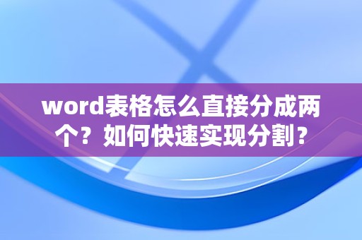 最佳答案一、Word表格直接分成两个的方法1. 使用“拆分表格”功能(1)选中要拆分的表格,点击表格工具下的“布局”选项卡。(2)在“布局”选项卡中,找到“合并”组,点击“拆分表格”。(3)在弹出的“拆分表格”对话框中,选择“在此下方插入一节”,点击......