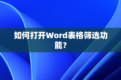 在Word表格中,筛选功能可以帮助您快速筛选数据,以下是打开筛选功能的步骤: