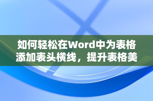 通过以上方法,你可以轻松地在Word表格中添加横线并设置表头格式,使你的表格更加美观和易于阅读。