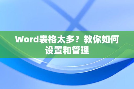 掌握Word表格的设置和管理技巧,可以使我们在撰写文档时更加得心应手,通过本文的介绍,相信大家已经对如何设置和管理过多的表格有了更深入的了解,在实际操作中,还需不断实践和总结,提高自己的Word操作水平。