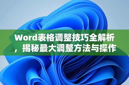 通过以上方法,您可以在Word中轻松调整表格的最大尺寸,以满足您的排版需求,希望本文对您有所帮助!