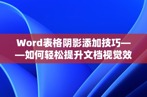 通过以上方法,我们可以轻松地在Word表格中添加阴影效果,使表格更加美观和突出,在实际应用中,可以根据自己的需求选择合适的阴影样式和效果,提升文档的整体视觉效果。