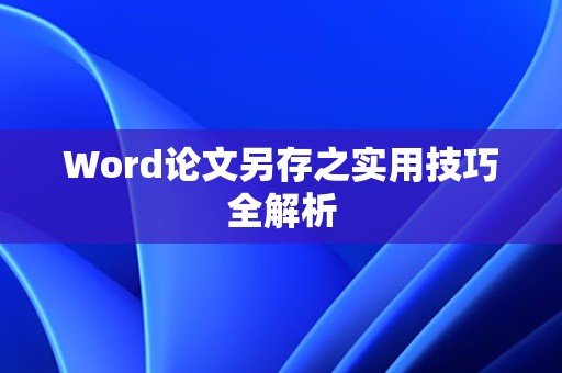 通过以上方法,您可以在Word论文中方便地实现部分另存,提高论文处理效率,希望本文对您有所帮助。