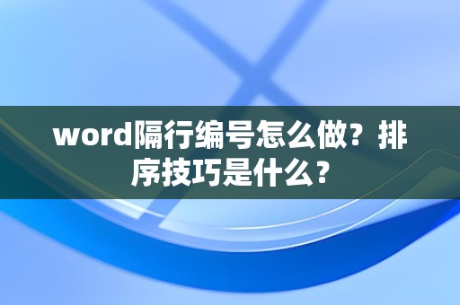 最佳答案一、Word隔行编号怎么做?1. 选择需要隔行编号的文本首先,打开Word文档,选中需要隔行编号的文本内容。2. 插入编号在“开始”选项卡中,点击“编号”按钮,打开编号库。在编号库中,选择一种合适的编号样式,点击插入。3. 设置隔行编号在编号......