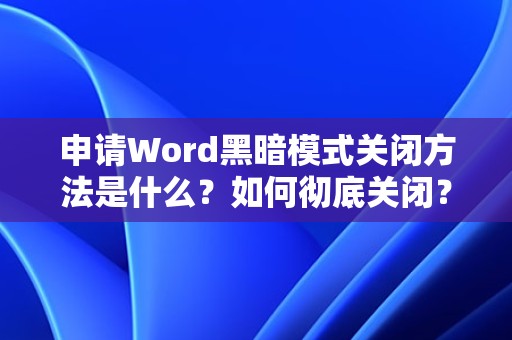 通过本文的介绍,相信您已经掌握了申请Word黑暗模式关闭方法以及如何彻底关闭。希望这些信息对您有所帮助。