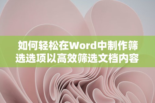 通过以上内容,相信大家对Word如何制作筛选选项有了更深入的了解,希望本文能帮助到您,让您在处理文档时更加得心应手。