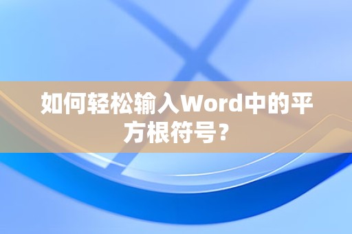Word中输入根号和平方根的方法有多种,包括快捷键、符号库和公式编辑器,掌握这些方法,可以方便地在文档中插入所需的数学符号,提高工作效率。