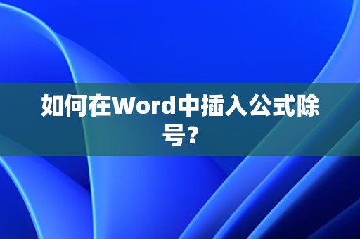 最佳答案1、使用“插入”菜单(1)打开Word文档,将光标放置在需要插入公式的位置。(2)点击“插入”菜单,选择“公式”。(3)在弹出的“公式”库中,找到“分数”或“根号”等公式,点击插入。(4)在公式中,使用“div”或“/”符号插入除号。(5)在除号两边分别输入被除数和除数。2、使用“Alt”键和数字键......