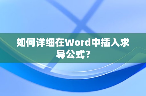 在Word中插入求导公式有三种方法:使用“插入”选项卡、使用“公式”对话框和使用快捷键,掌握这些方法,可以帮助用户在撰写文档时轻松插入求导公式。