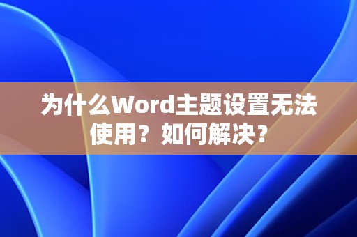 Word主题设置无法使用的原因有多种,本文针对常见原因进行了分析,并提供了相应的解决方法,希望对广大Word用户有所帮助。