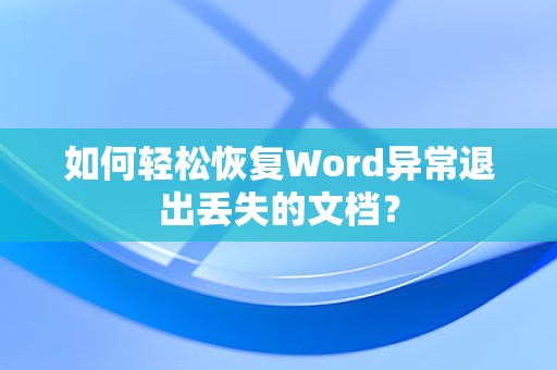 Word异常退出是我们在使用Word时可能会遇到的问题,但只要我们掌握了一些恢复方法,就能轻松找回丢失的文档,希望本文能帮助到大家。