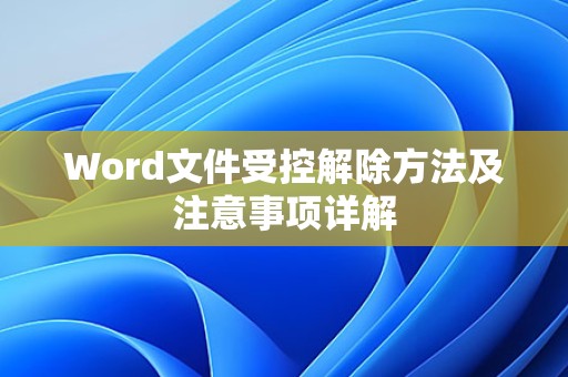 Word文件受控解除是一个相对简单的过程,只需按照上述方法操作即可,在解除受控状态时,请务必注意文件的安全性,确保文件来源可靠,希望本文对您有所帮助。