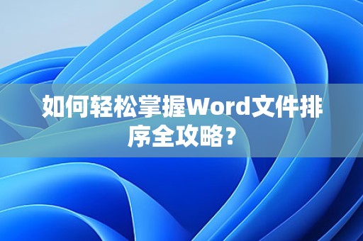 掌握Word文件排序技巧,能够帮助我们更好地组织和阅读文档,通过本文的介绍,相信您已经对Word文件排序有了更深入的了解,在实际操作中,不断实践和总结,您将能够更加熟练地运用这些技巧。