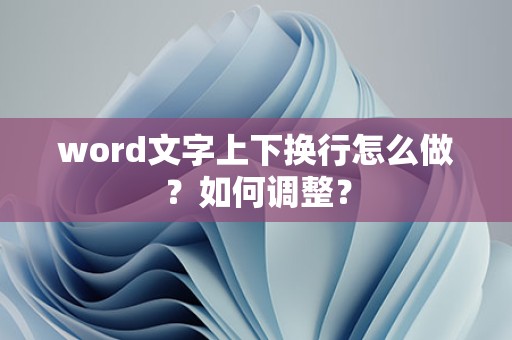 最佳答案一、Word文字上下换行怎么做?1. 使用自动换行功能在Word文档中,默认情况下,文字会自动进行上下换行。当你输入的文字达到行尾时,Word会自动将文字换到下一行。如果你希望改变这一行为,可以按照以下步骤进行操作:(1)打开Word文档,选中需要调整的文字。(2)点击“开始”选项卡中的“段落”组。......