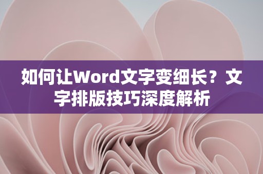 在Word中,将文字变得细长是一种常见的排版技巧,通过调整字体大小、宽度、行距、段落间距以及选择合适的字体,可以使文字变得更加美观,希望本文能帮助您掌握这一技巧,提高Word文档的排版水平。
