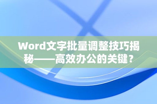 通过以上方法,我们可以轻松实现批量调整Word文字,提高工作效率,在实际应用中,我们可以根据具体需求选择合适的方法,使工作更加高效。