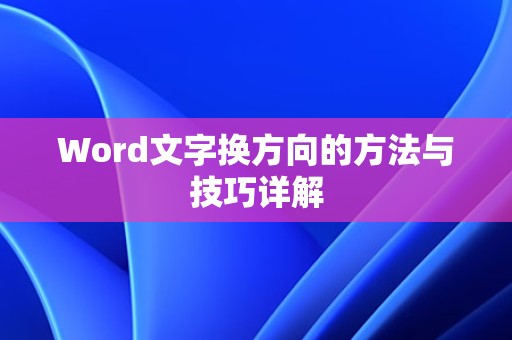 通过以上介绍,相信您已经掌握了在Word中如何改变文字方向的方法,在实际应用中,灵活运用这些技巧,可以使您的文档更加美观、专业。