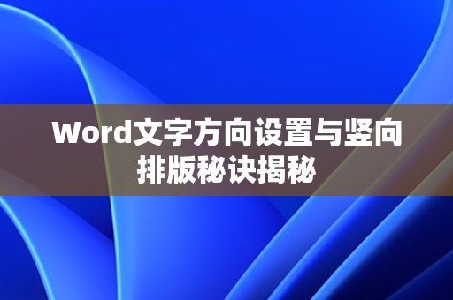 通过以上介绍,相信您已经掌握了Word文字方向设置及竖向排版的方法,在实际操作中,可以根据需求灵活运用这些技巧,制作出美观、实用的文档。