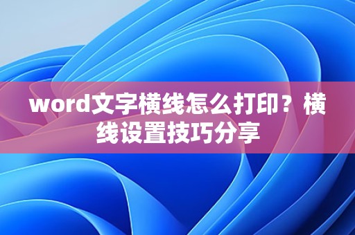 最佳答案一、Word文字横线怎么打印?1. 打开Word文档,选中需要添加横线的文字。2. 点击“开始”选项卡中的“段落”组,找到“边框”按钮。3. 在下拉菜单中选择“边框和底纹”,打开“边框和底纹”对话框。4. 在“边框和底纹”对话框中,切换到“边框”选项卡。5. 在“设置”区域,选择“横线”样式。6. ......