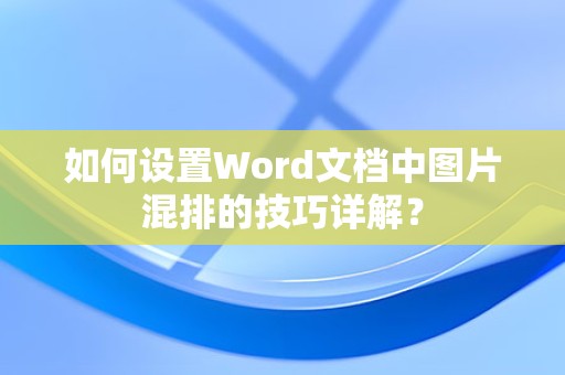 最佳答案Word文档中的图片混排指的是将文字与图片进行排版,使它们在文档中相互配合,达到图文并茂的效果,在Word中,图片混排主要有以下几种方式:1、文字环绕:文字围绕图片排版,图片处于文字的周围。2、上下型环绕:图片位于文字上方或下方,文字在图片的上方或下方。3、紧密型环绕:文字紧密地环绕在图片周围,不留......