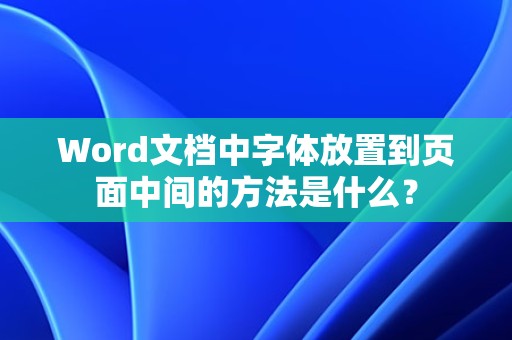 通过以上方法,您可以在Word文档中轻松地将字体放置到页面中间,在实际操作中,您可以根据自己的需求调整字体的大小、颜色、效果等,使文档更加美观,希望本文对您有所帮助。