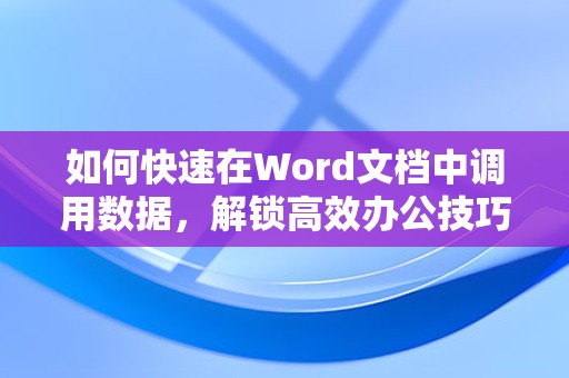 通过以上几种方法,我们可以在Word文档中快速调用数据,提高办公效率,在实际应用中,可以根据具体情况选择合适的方法,以便更好地完成工作任务。