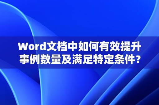 在撰写Word文档时,增加事例和条件是提高文章质量的重要手段,通过以上方法,我们可以使文档更具说服力、实用性和可读性。