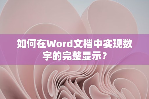 通过以上方法,您可以在Word文档中实现数字的完整显示,并运用一些技巧来美化文档,希望这篇文章对您有所帮助。