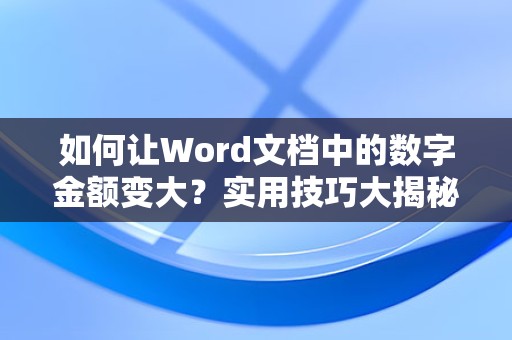 通过以上方法,您可以在Word文档中轻松地将数字金额变大,下面是关于这些技巧的一些常见问题解答。