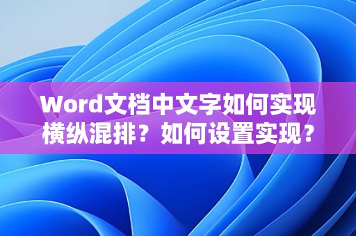 通过以上步骤和设置,你可以在Word文档中轻松实现文字的横纵混排,为你的文档增添独特的视觉效果。