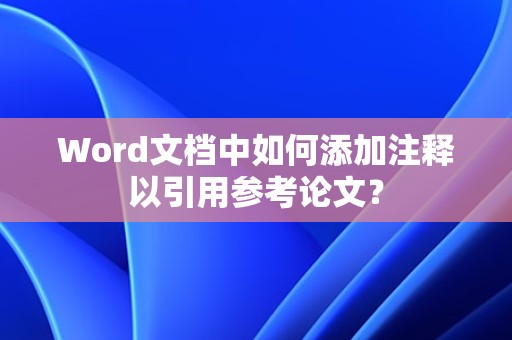 在Word中,我们可以通过脚注或尾注来注释参考文献。