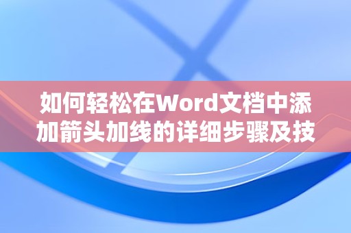 通过以上步骤和技巧,相信您已经能够轻松地在Word文档中添加箭头并为其加线,希望这篇文章能对您有所帮助。