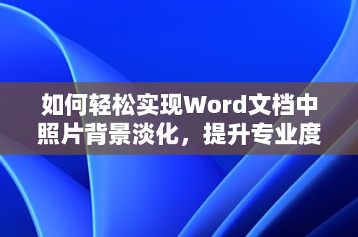 通过以上方法,您可以在Word中轻松淡化照片背景,使图片与文档更好地融合,在实际操作中,您可以根据自己的需求和喜好选择合适的方法,希望本文能对您有所帮助。