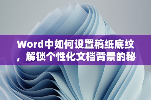通过以上步骤和技巧,您可以在Word中轻松设置个性化的稿纸底纹,让您的文档更具特色,希望这篇文章能帮助到您!