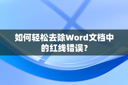 最佳答案1、方法一:直接点击红线错误当Word软件检测到语法或拼写错误时,会在相应的单词或短语下面显示红色波浪线,我们只需将鼠标光标移至红色波浪线上,点击一下,即可删除该错误。2、方法二:使用快捷键在Word文档中,按下“Ctrl+Z”组合键可以撤销上一步操作,从而删除红线错误,需要注意的是,这种方法只能删......