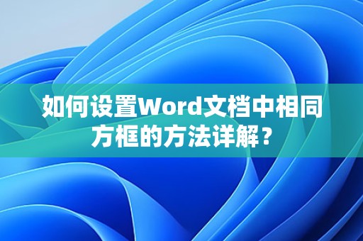 通过以上方法,我们可以在Word中设置方框相同,使文档更加美观、易读,希望本文能帮助到您。