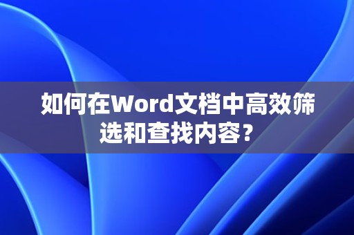 在处理大量文本内容时,快速准确地找到所需信息是至关重要的,Word提供了强大的筛选和查找功能,可以帮助用户高效地完成这项任务,以下是详细的操作步骤:
