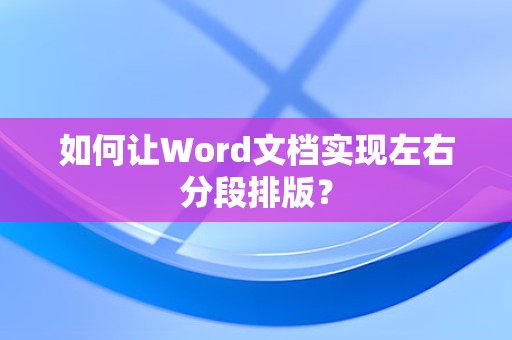 最佳答案1、左右分段:在Word文档中,左右分段是指将文档分为左右两个部分,左侧部分通常用于显示文本,右侧部分则可以放置图片、表格或其他元素。2、分栏:分栏是将文档内容分为多个并排的栏,每栏宽度相同,在分栏排版中,左右分段是一种常见的布局方式。1、打开Word文档,选择需要设置左右分段的页面。2、点击“布局......