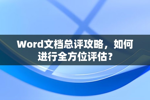 通过以上内容,相信大家对如何在Word文档中进行总评有了更深入的了解,在实际操作中,我们要注意总评的步骤、技巧和注意事项,以提高总评的质量。