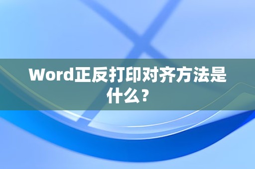 通过以上步骤和技巧,你可以在Word中实现正反打印的对齐,确保打印出的文档既美观又实用。