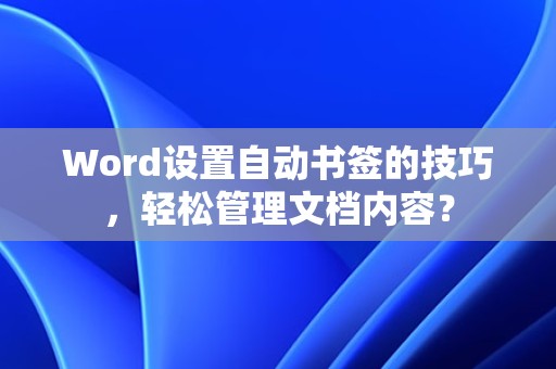 通过以上步骤,您可以在Word中轻松设置和使用自动书签,自动书签功能可以帮助您更好地管理文档内容,提高工作效率。